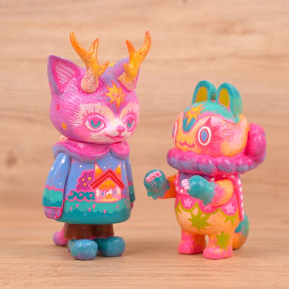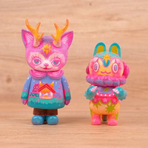 “RETRO TOY SHOP” is a series of collaboration projects by Kaori Hinata and Teresa Chiba, featuring an annual release of their principal characters - Morris the Cat with Antlers and INU-HARIGON - in retro nostalgic colorways.