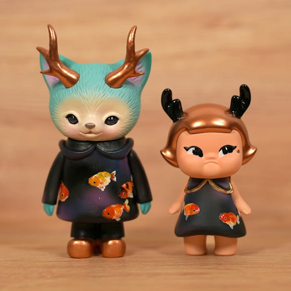 “RETRO TOY SHOP” is a series of collaboration projects by Kaori Hinata and Teresa Chiba, featuring an annual release of their principal characters - Morris the Cat with Antlers and INU-HARIGON - in retro nostalgic colorways.